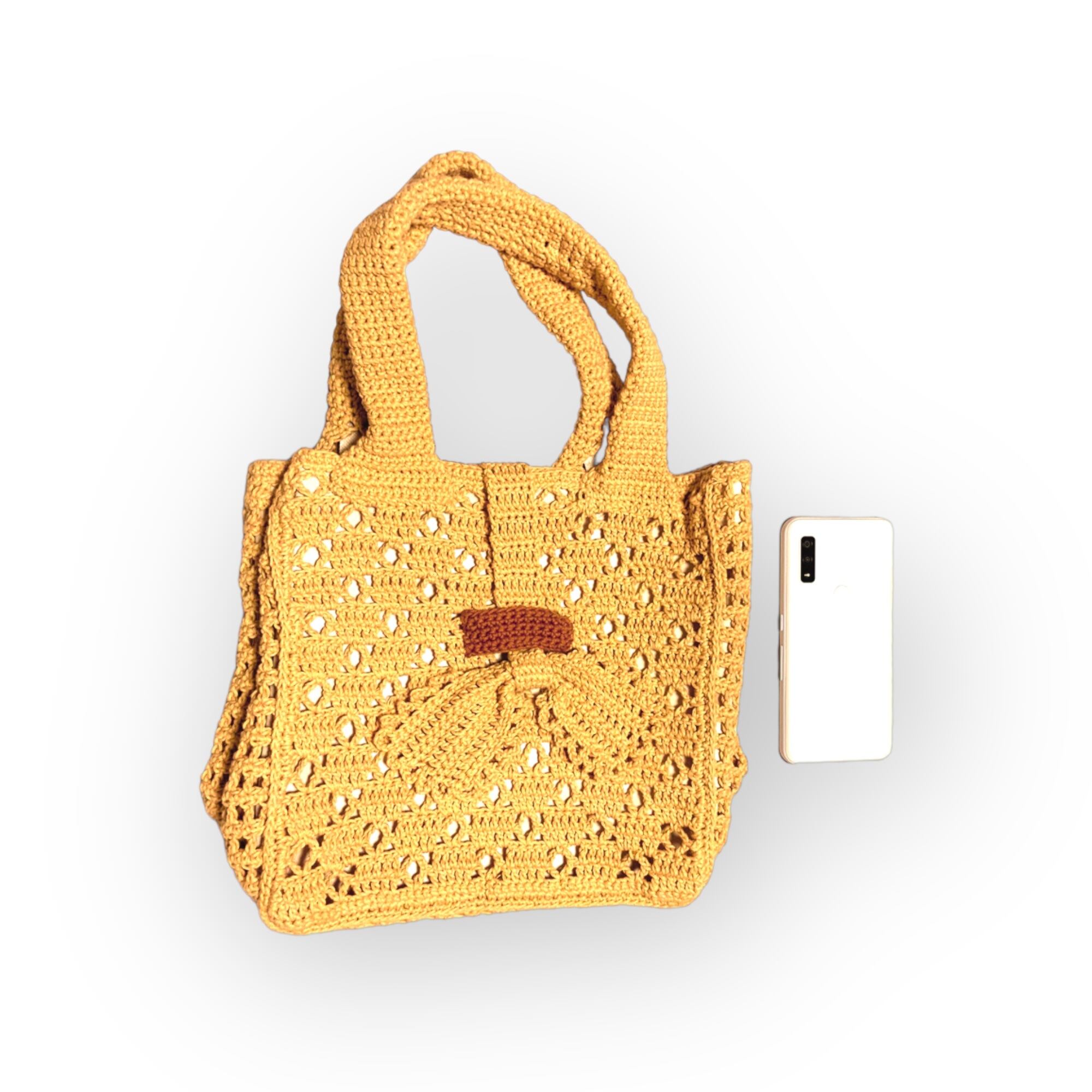 ナチュラルな風合いが魅力の手編みトートバッグ。丁寧に編まれた独特の模様が、どこか温かな気持ちにさせてくれます。外ポケット付きなので、小物やスマホなどの出し入れがスムーズに行えます。幅広のマチは厚みのある荷物もしっかりと収納できます。シンプルなデザインなので、どんなスタイルにも合わせやすく、持つだけでおしゃれな雰囲気を演出します。使い込むほどに風合いが増し、あなたのお気に入りの一品になることでしょう。